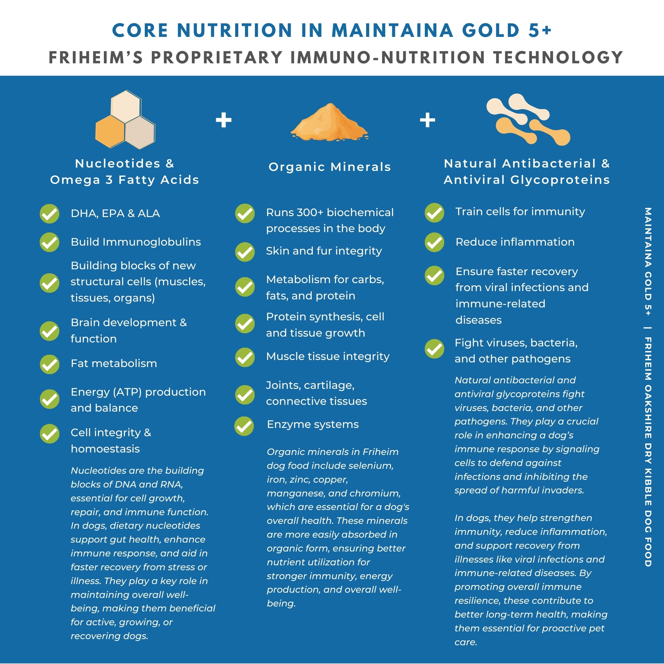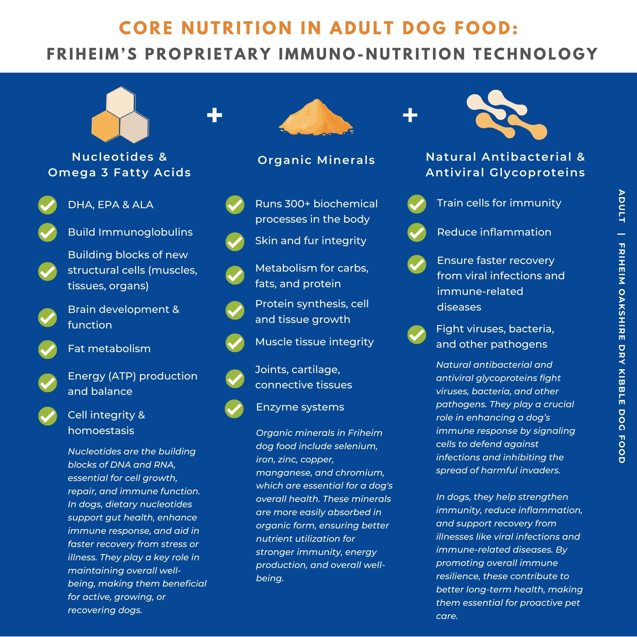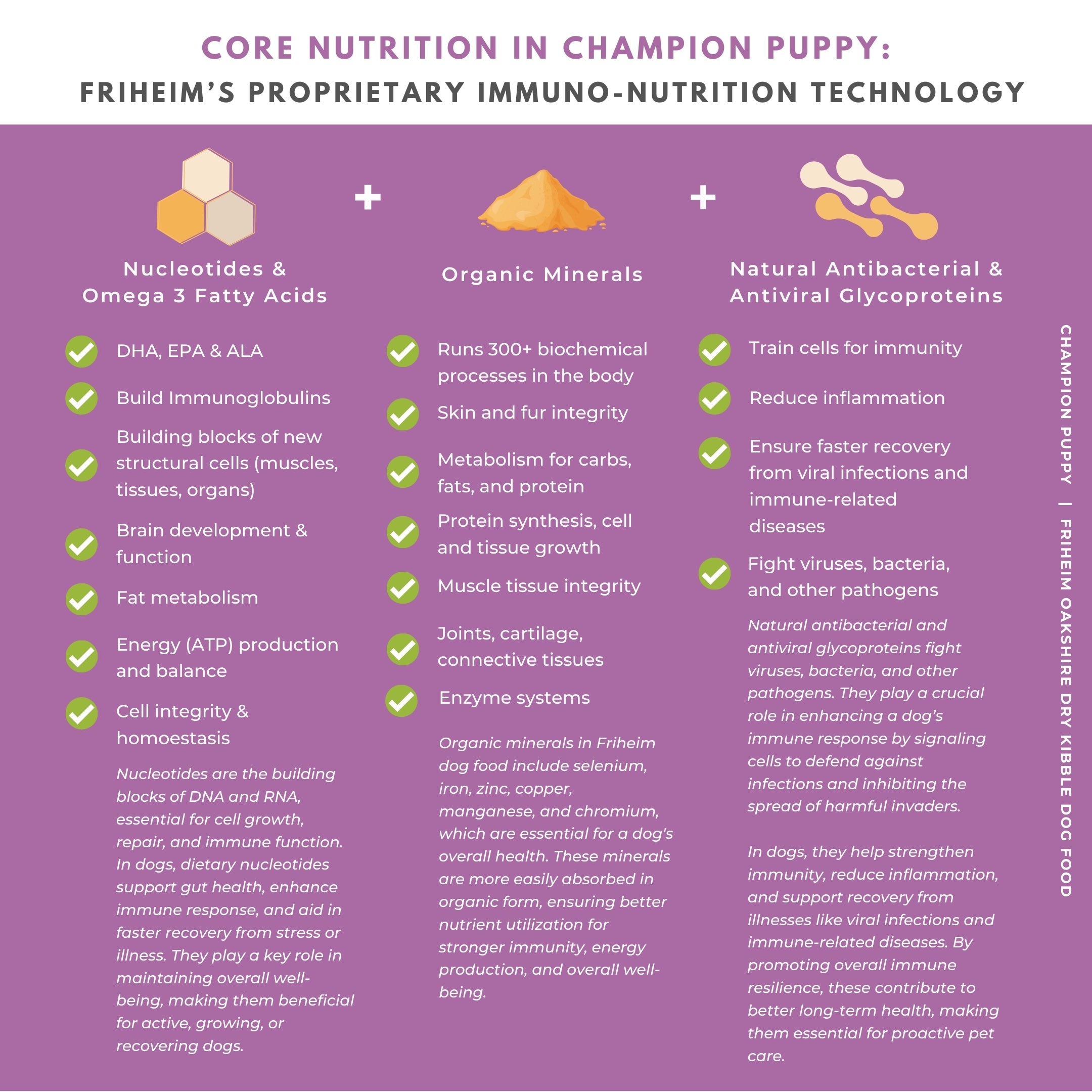 Friheim is powered by its proprietary Immuno-Nutrition Technology: a science-backed, nutrition-first approach to diet formulation that provides 100% of the daily nutrient requirements of the modern-day canine in terms of energy, protein, fat, fiber, vitamins, and minerals while strengthening their immune system to create a protective shield against viruses and common diseases.